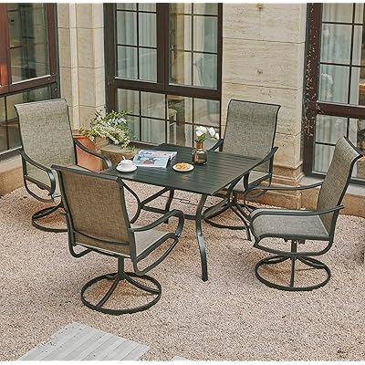 Mf studio 7pcs patio dining setour outdoor 7pieces patio dining set looks simple and elegant, matches well with your patio, garden, backyard or dining room.